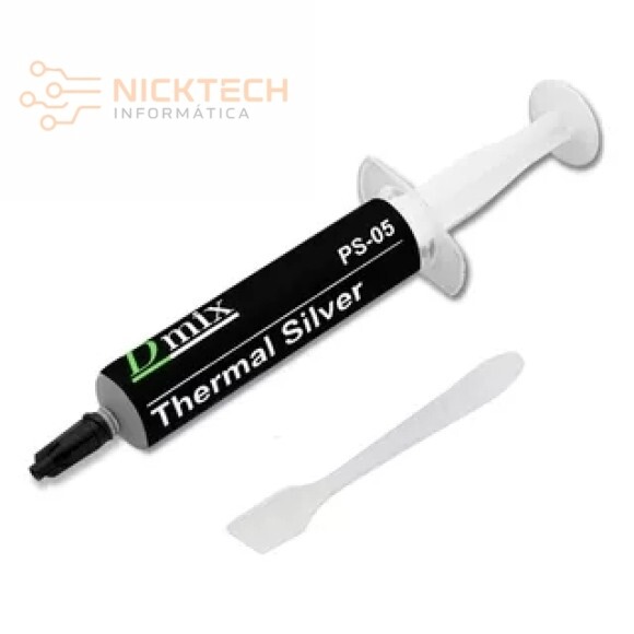 Características do produto:– Quantidade: 5g– Condutividade de 3,05 W/MK– Viscosidade de 10.000– Densidade de 2,5 G/CM3– Cor: Cinza– Acompanha pazinha A pasta térmica prata PS-05 da Dmix é uma ótima escolha para você que tem um computador ou notebook que está esquentando absurdamente.Com está pasta térmica o seu processador vai trabalhar da melhor maneira.