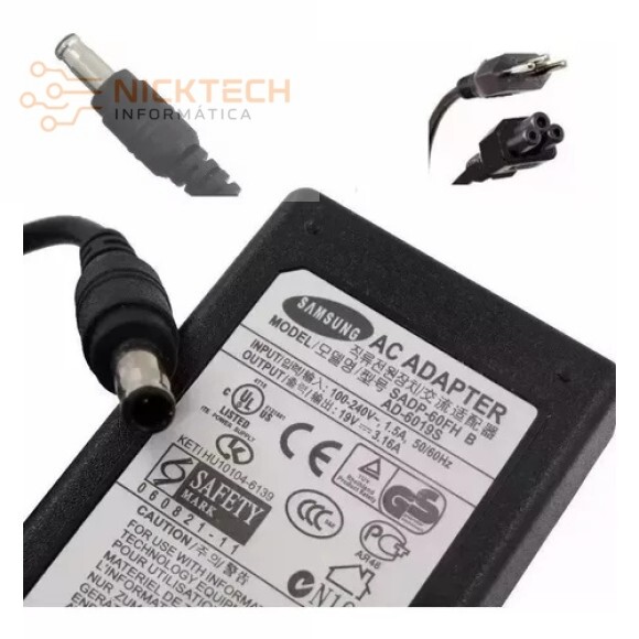 FONTE NOTEBOOK SAMSUNG 60W 19V 3.16A PLUG 5.5X3.0