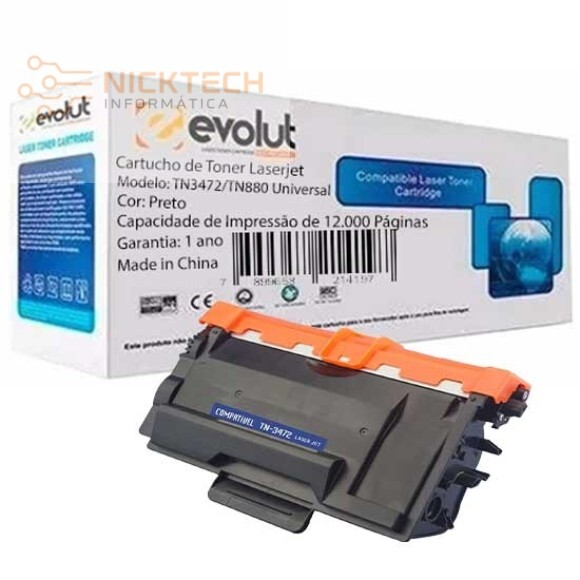 1 - TONER COMPATÍVEL BROTHER TN 3472/ TN 880 12K - EVOLUT