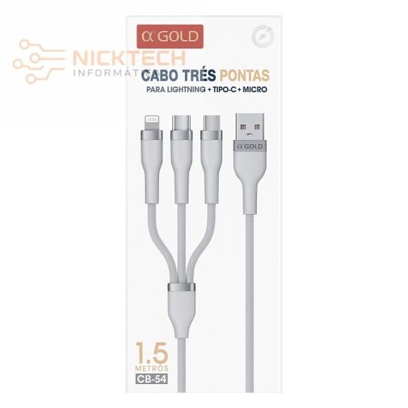 CABO 3 PONTAS LIGHTNING-TIPO C-MICRO 1.5M CB-54 AGOLD (R#)