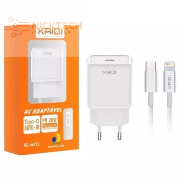 CARREGADOR TURBO 20W TIPOC PARA LIGHTNING KD-669CL (R#)