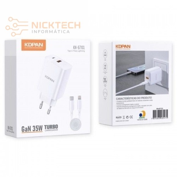 CARREGADOR TURBO 35W CABO TIPO C PARA IPHONE KN-671CL (R#)