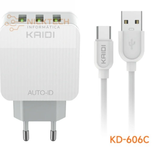 CARREGADOR TIPO C 3USB 3.1A KD-606C (R#)