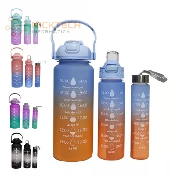 Kit 3 Garrafa Motivacional Água Alça Adesivo 3dl 2l Squeeze