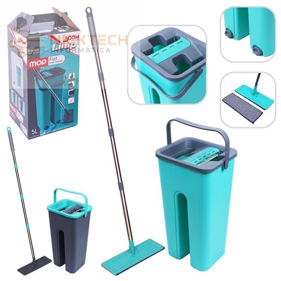MOP FLAT TIRA PÓ MULTIUSO COM BALDE MOPWASH REFIL EXTRA MICROFIBRA