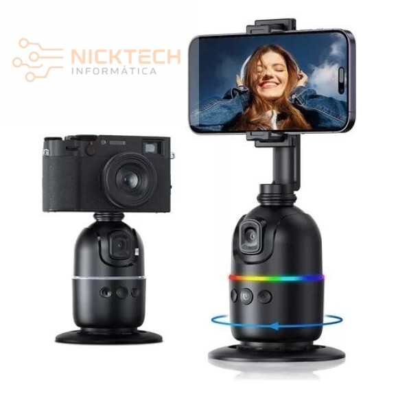 - Movimento 360°: Permite a rotação automática, capturando vídeos panorâmicos e dinâmicos sem esforço.
