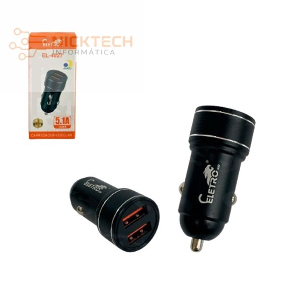 CARREGADOR VEICULAR 5.1A 2USB EL-4027 ELETROMEX