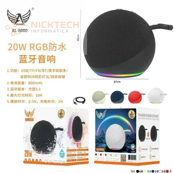 Aumente o som com praticidade usando a CAIXA DE SOM BOLINHA ALAXE KA-8351 AL-8000!