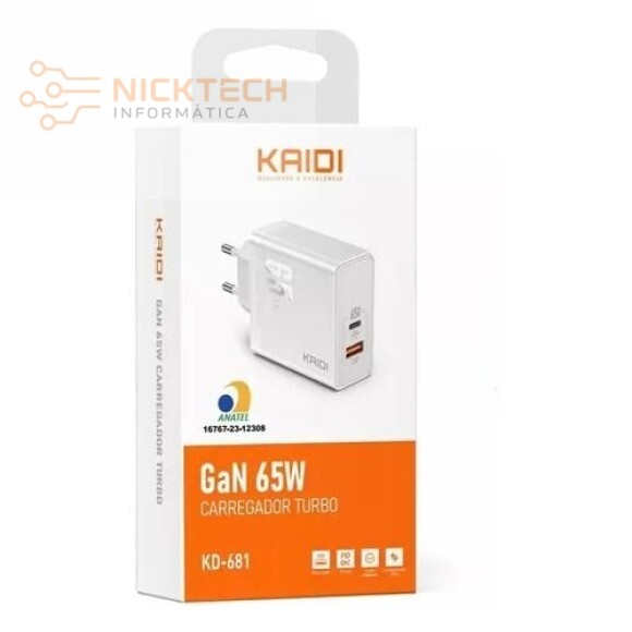 TOMADA CARREGADOR KAIDI KD-681 65W TURBO (R#)