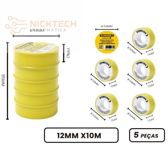 5 ROLOS DE FITA VEDA ROSCA BOM-1335 (R#)